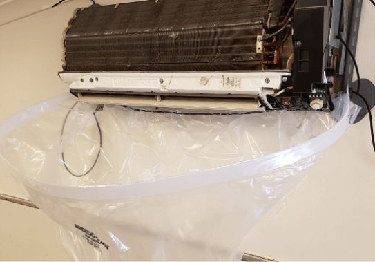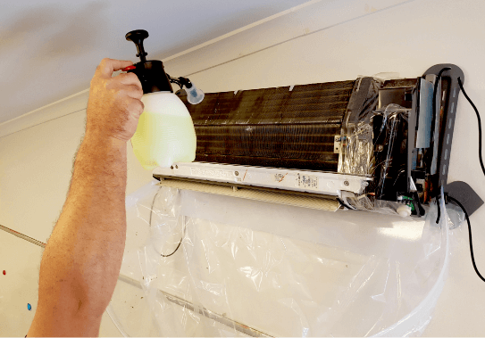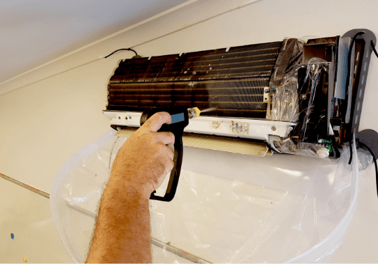 We prioritise safety over everything else so before we start, the power is turned off, we’ll cover all electrical spots and place protection around the air conditioner.