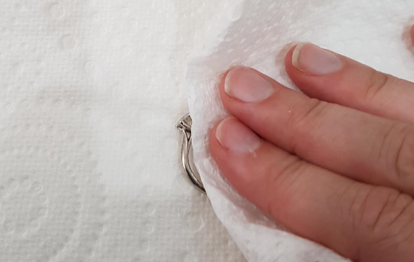 No need to buy expensive jewellery cleaning products anymore. Put a small amount of toothpaste on your silver then use the microfibre cloth to rub it in well. Rinse in warm water then gently pat dry with either paper towel or a dry cloth.